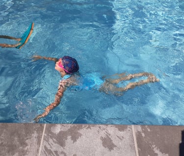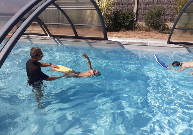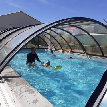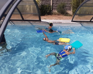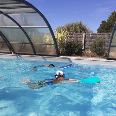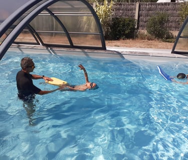 L'été, je vous propose d'apprendre à nager à vos enfants à mon domicile. Ma piscine est spécialement étudiée car elle possède des profondeurs variables, permettant ainsi de m'adapter au niveau de l'enfant mais également de le faire progresser.