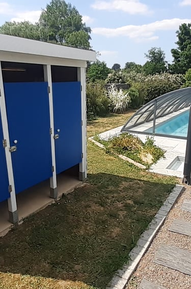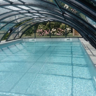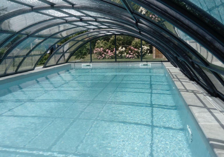 Eau chauffée à 30 degrés et bassin couvert selon la météo.